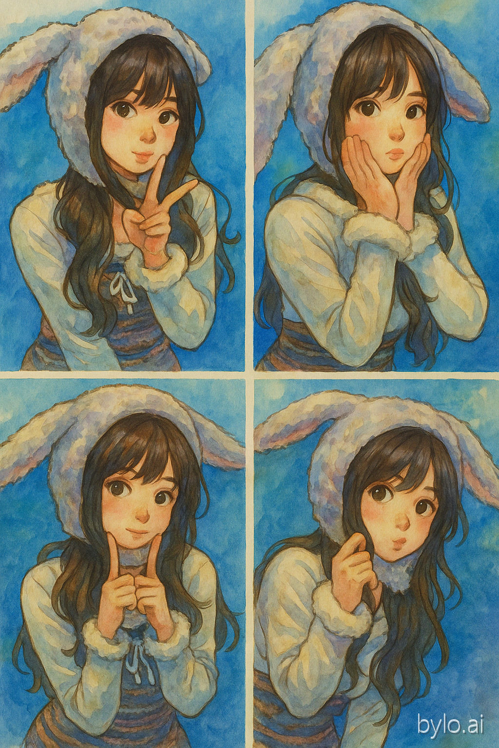 가장 섬세하고 감정 중심적인 포즈 구성입니다. “귀여운 제스처”보다 머리..